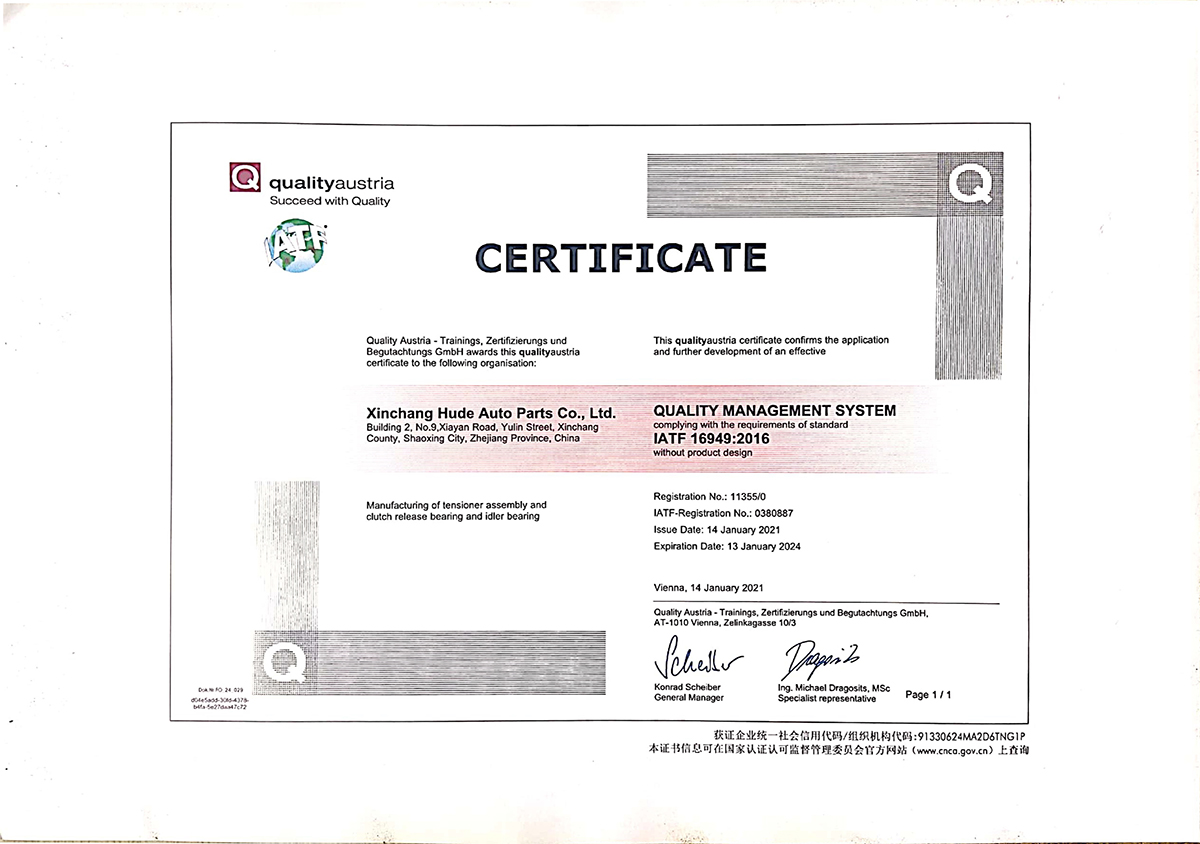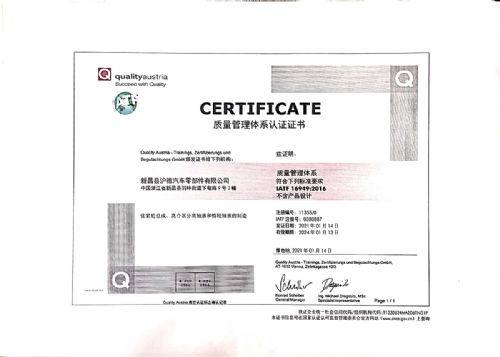 We are certified with ISO9002, ISO9000, TS16949. This quality control covers all department of company from purchasing and production to sales and shipping.